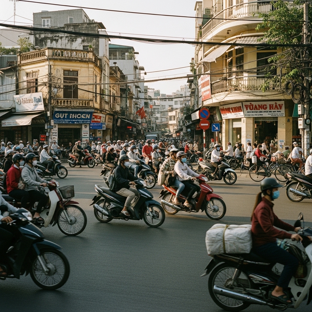베트남의 교통 문화는 한국과 상당히 다릅니다. 신호를 엄격하게 지키기보다는 전체 흐름에 맞춰 움직이는 경우가 많습니다. 특히 오토바이가 매우 많아 도로를 건널 때 주의가 필요합니다. 베트남 여행 중에는 무리하게 뛰지 말고, 일정한 속도로 천천히 건너는 것이 오히려 안전합니다.